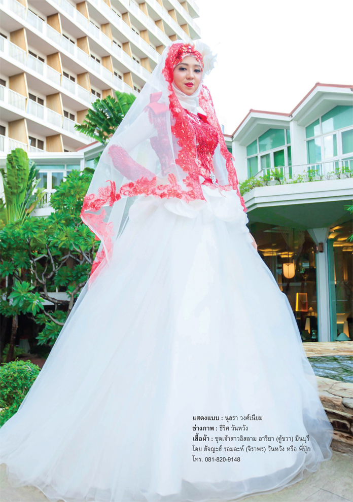 เสื้อผ้า : ชุดเจ้าสาวอิสลาม อารียา (คู้ขวา) มีนบุรี โทร. 081-820-9148